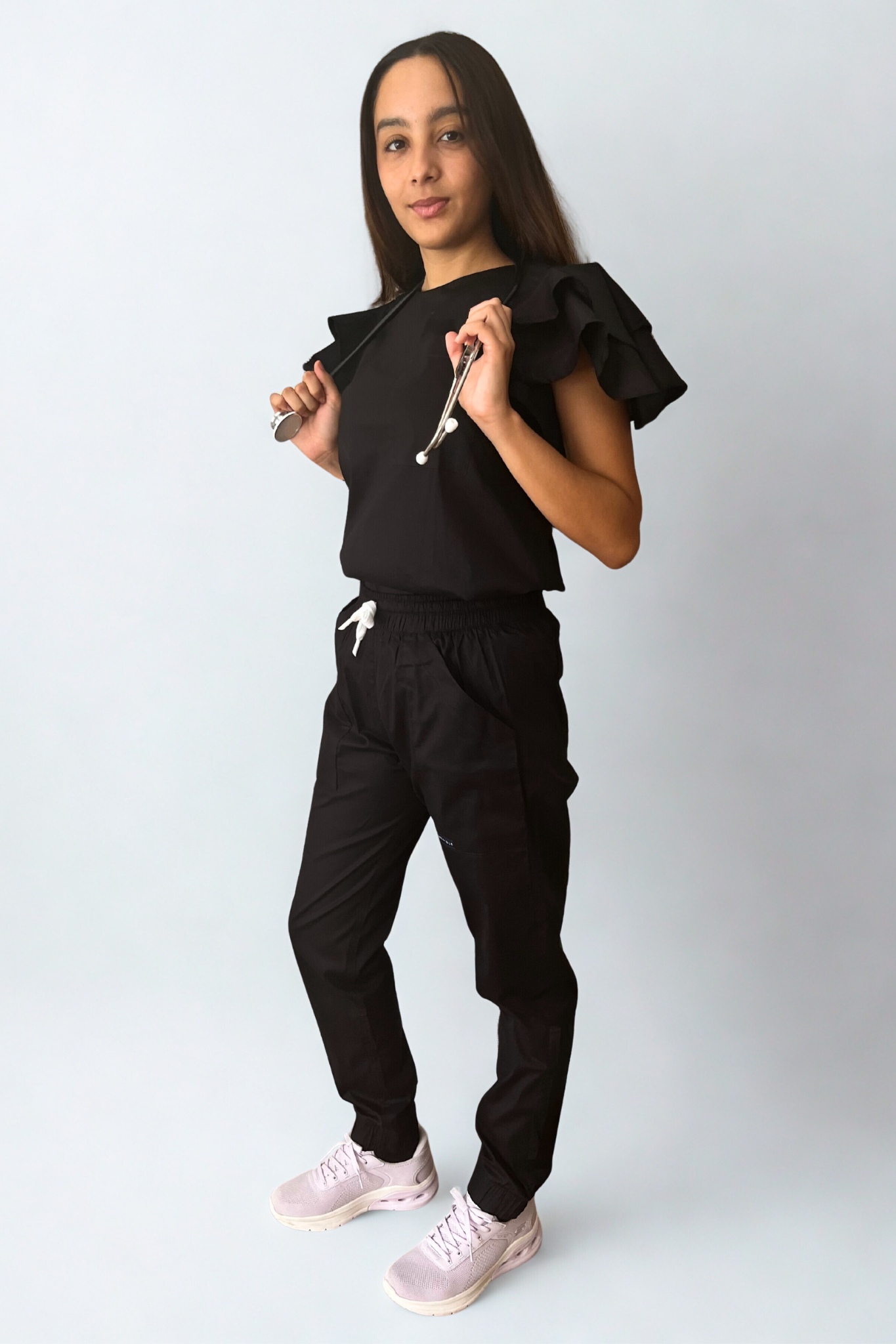 Effortlessly elegant and designed for comfort, the Fahmeeda in Black combines a flattering silhouette with breathable cotton that keeps you cool on hot South African days. The soft cotton-spandex blend allows gentle stretch while maintaining shape, so you can move freely throughout your shift.