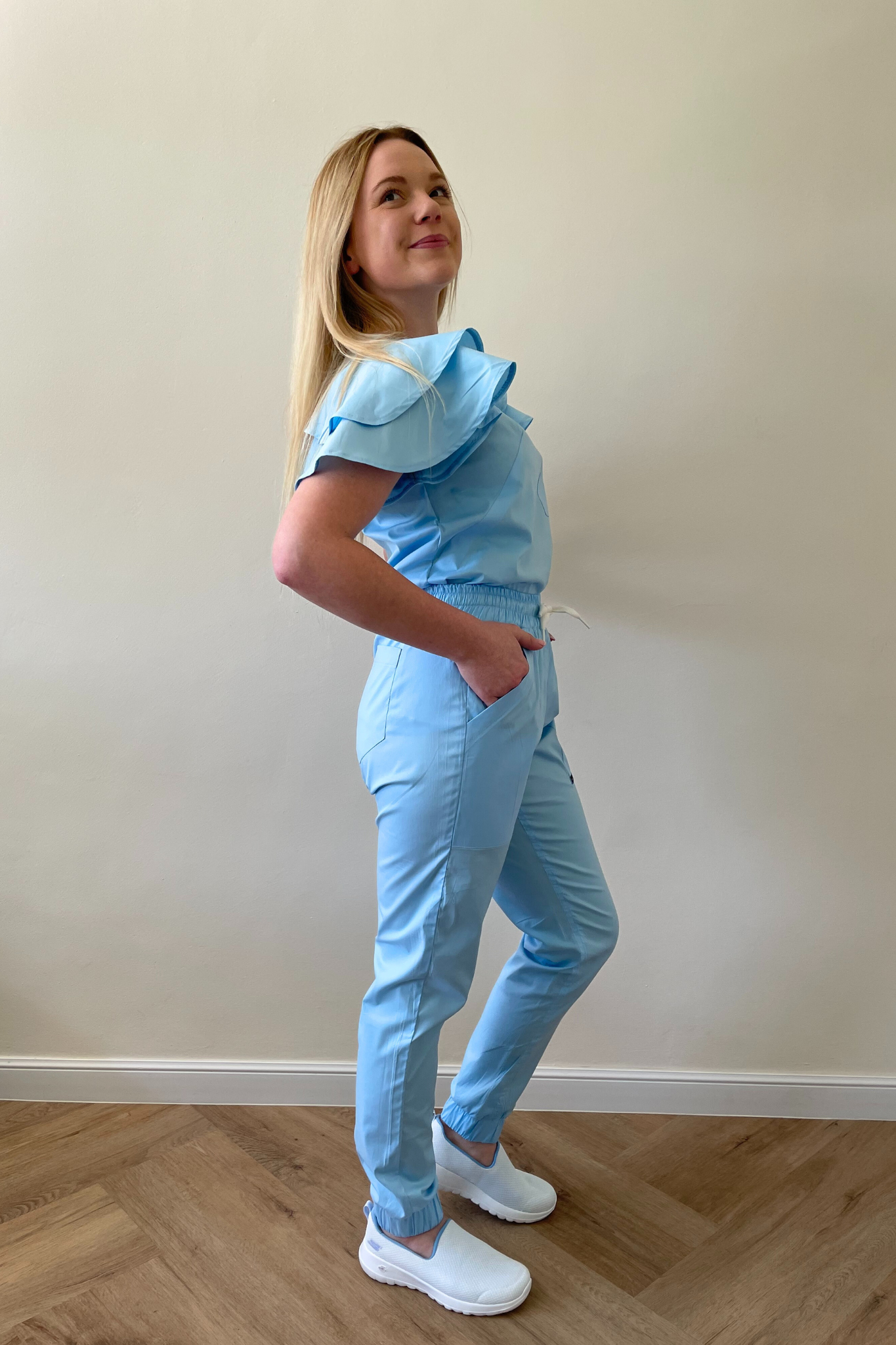 Effortlessly elegant and designed for comfort, the Fahmeeda in Sky Blue combines a flattering silhouette with breathable cotton that keeps you cool on hot South African days. The soft cotton-spandex blend allows gentle stretch while maintaining shape, so you can move freely throughout your shift.